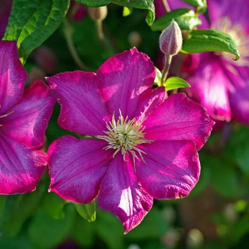 Клематис Карменсита относится к группе Витицелла и невероятно универсален в использовании. Он успешно используется как в вертикальном озеленении, так и в качестве почвопокровного растения, прекрасно подходит для контейнерного выращивания на балконах и террасах. Это лиана, которая может достигать высоты до 3 метров, что делает её отличным выбором для создания живописных цветочных арок или стен.