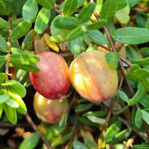 Великолепные пурпурно-красные ягоды имеют продолговатую форму и могут достигать диаметра до 2.5 см. Их плотная мякоть сочетает в себе кислинку и легкую сладость, создавая гармоничное, освежающее послевкусие.